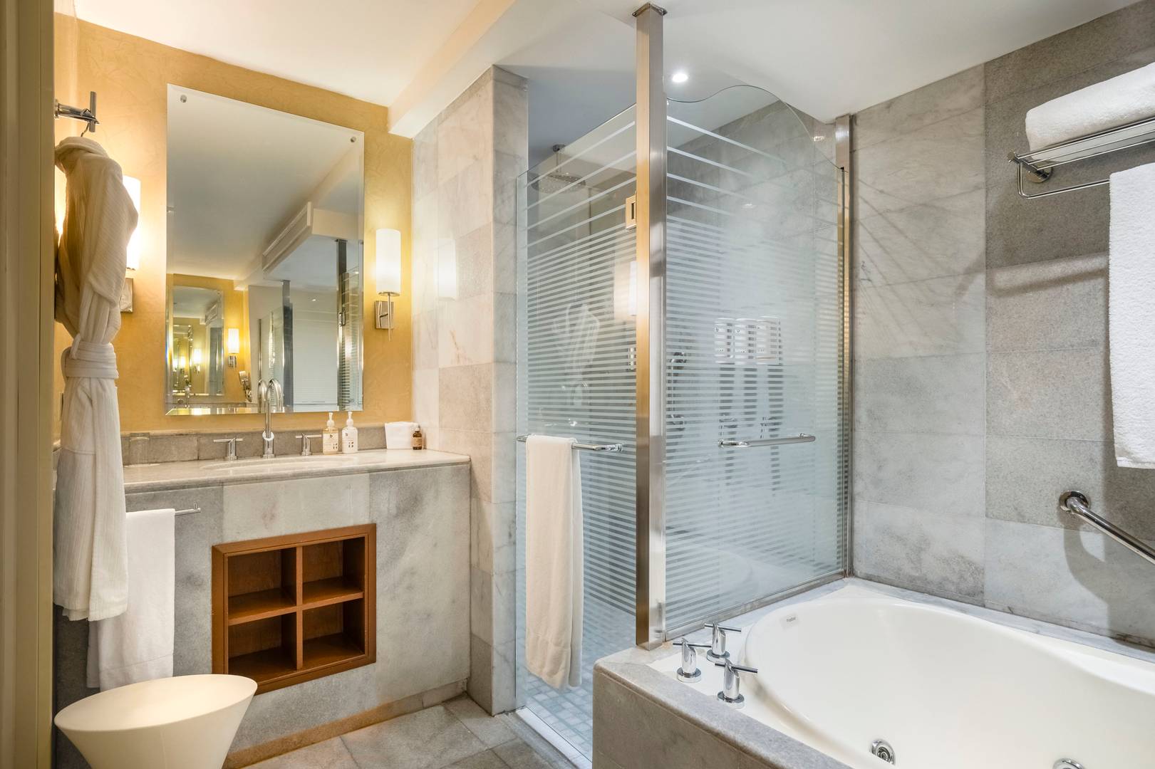 In select rooms, your butler will make you feel at home 24 hours a day. He or she will show you to your suite, help you unpack your luggage, and customize your pillow, your aromatherapy essence, and your minibar service. He or she can draw a relaxing bath for you or attend to your laundry or shoe-shining needs.