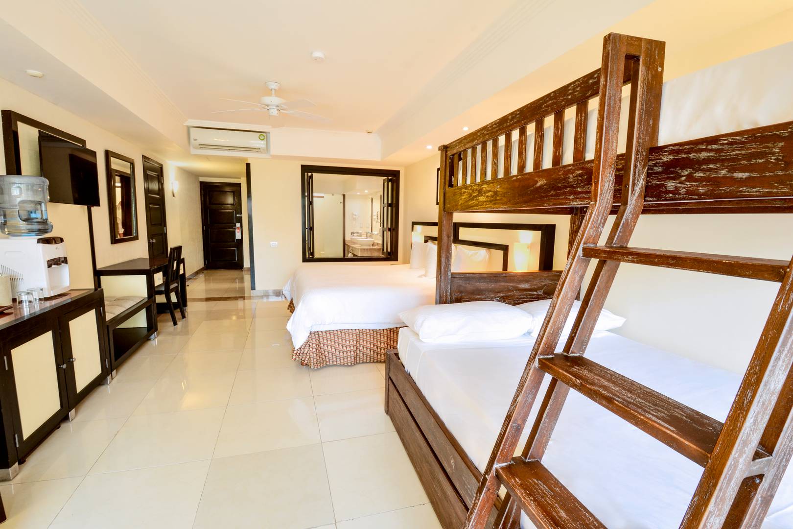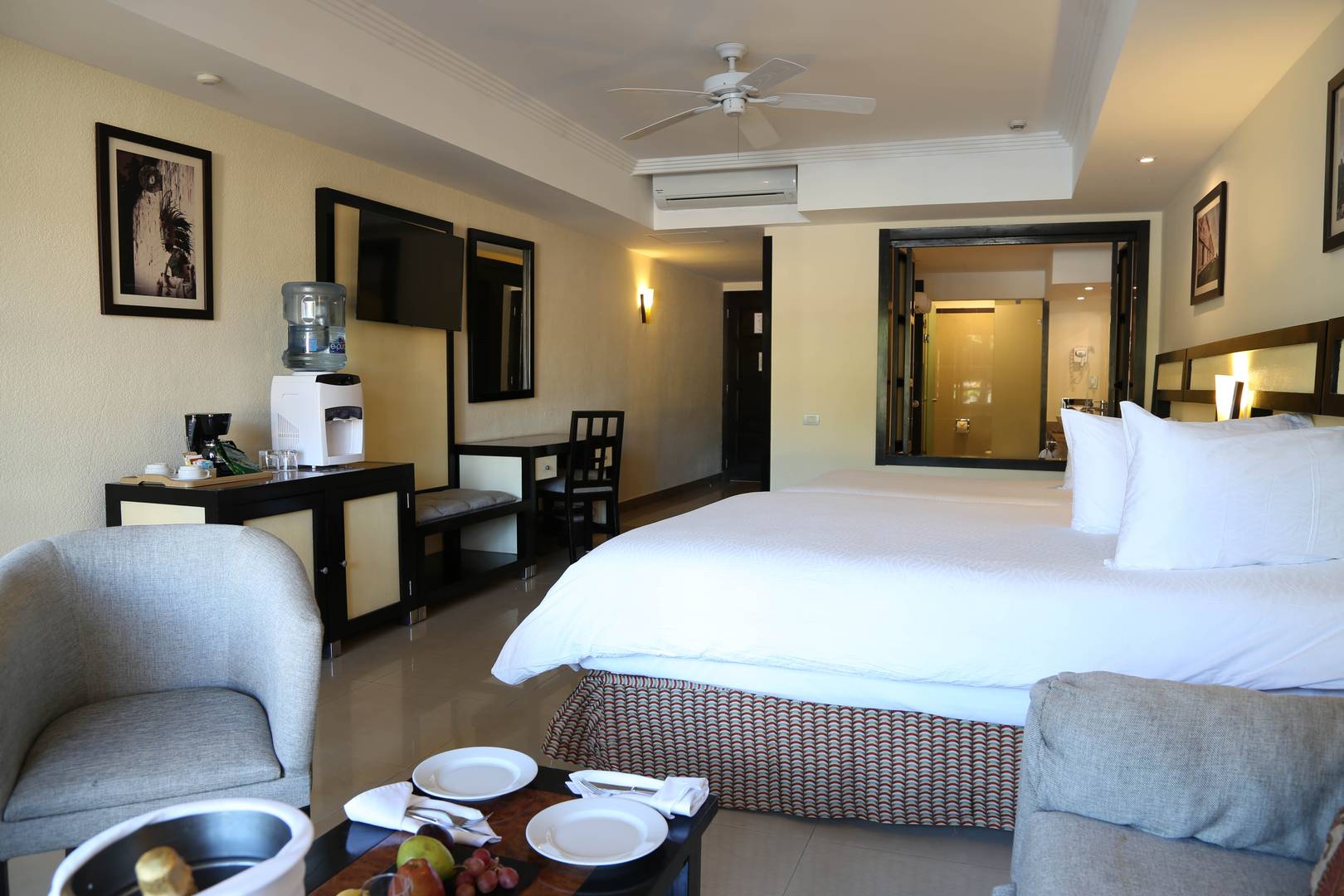 - Mini-bar with Mineral Water, Soft Drinks and Beer